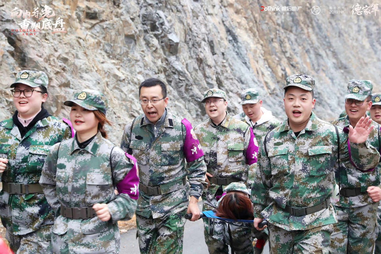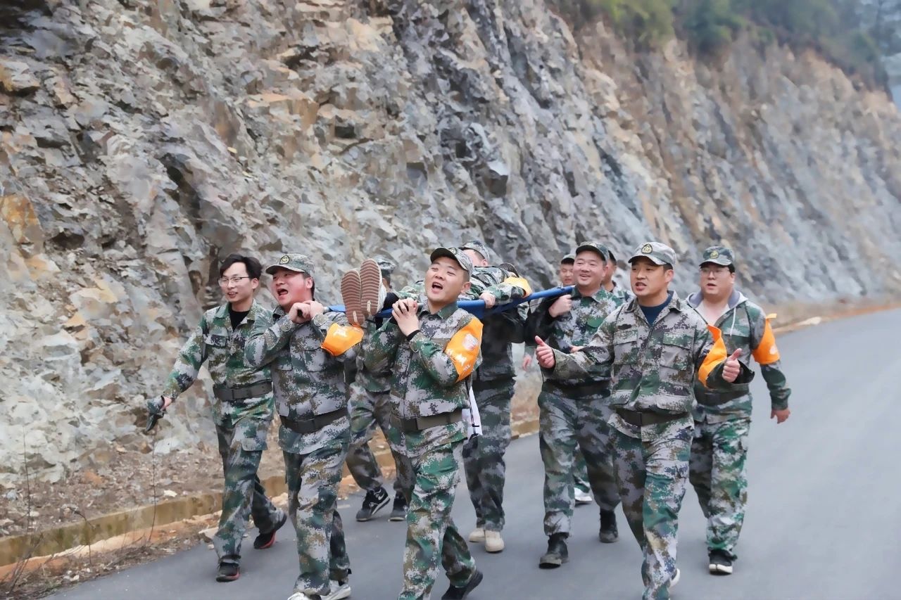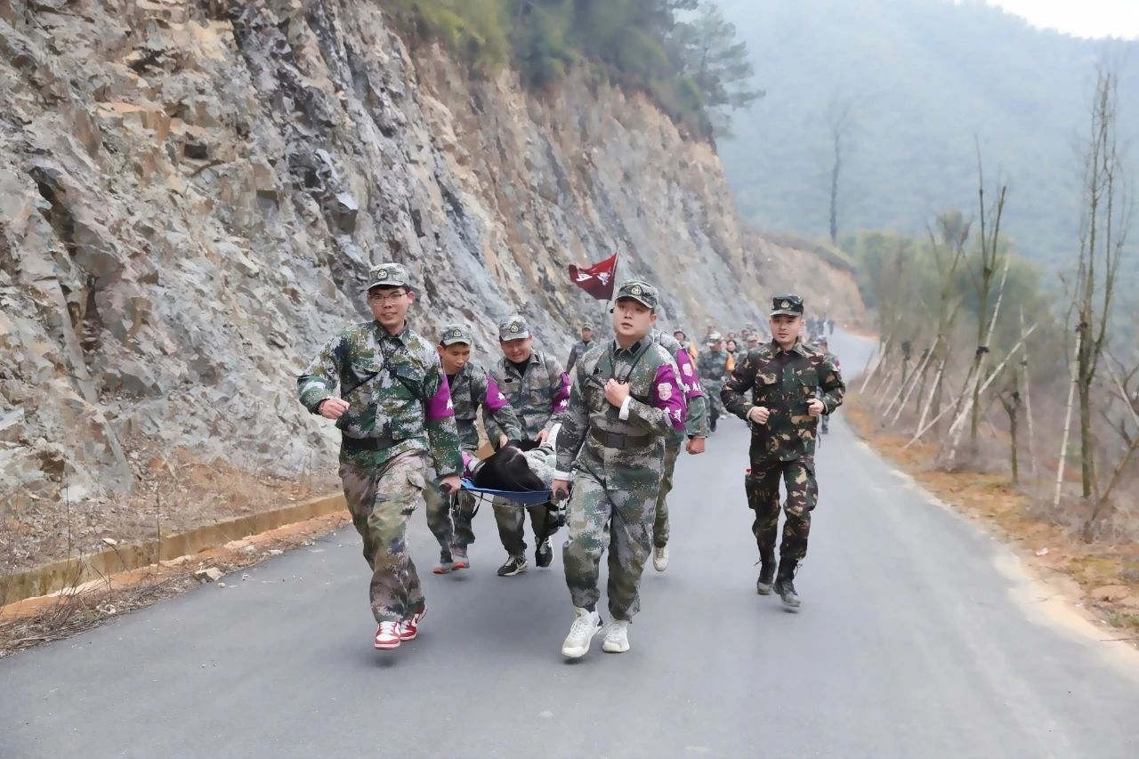 徒步6公里竞走拉练,在过程中需要完成“担架抬行”的任务,需团队全员到齐才算完成任务,充分发挥了德家军“困必奋力相救”的德家军精神。