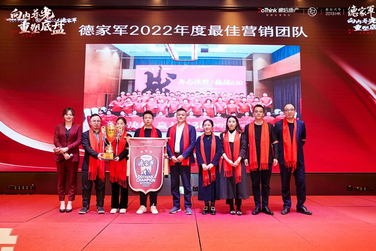 从个人奖项2022年度拓客冠军、销售冠军、德家军标兵、金牌操盘手,到团队奖项王牌之师奖、营销最佳城市公司奖,每份荣誉都是对过去一年这些优秀人物和团队的认可和嘉奖。