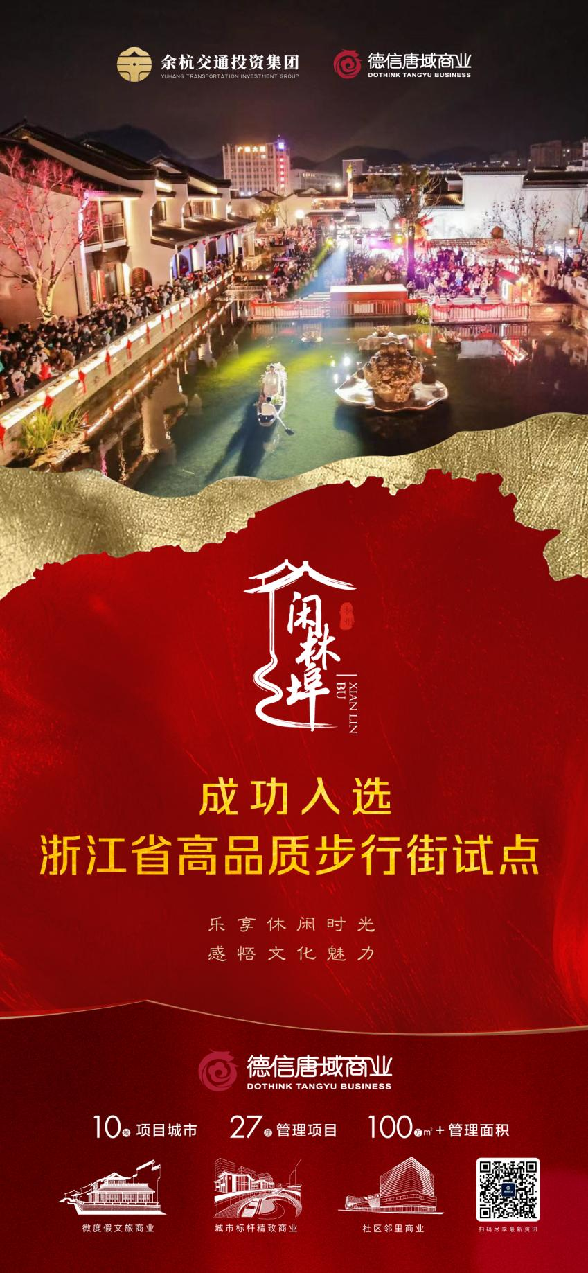 近日,省商务厅公布了2023年度浙江省高品质步行街试点名单,开体育app官网入口网页唐域商业旗下微度假文旅商业代表项目——闲林埠老街成功上榜。