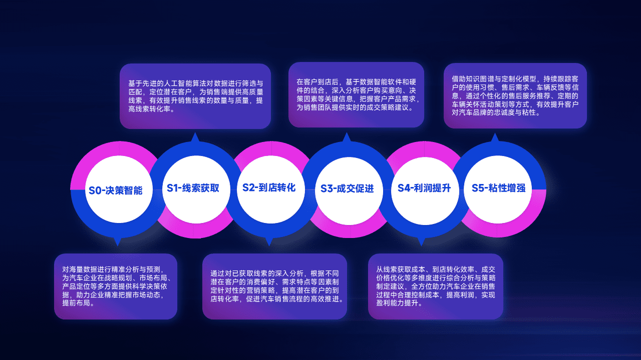 通过拓宽潜在客户来源、、、、优化线索分配并提高到店转化率,,,,以增强销售效率。。同时,,,,利用线索数据不断优化分析模型,,,有效提升转化率,,扩大营销影响力。。。。